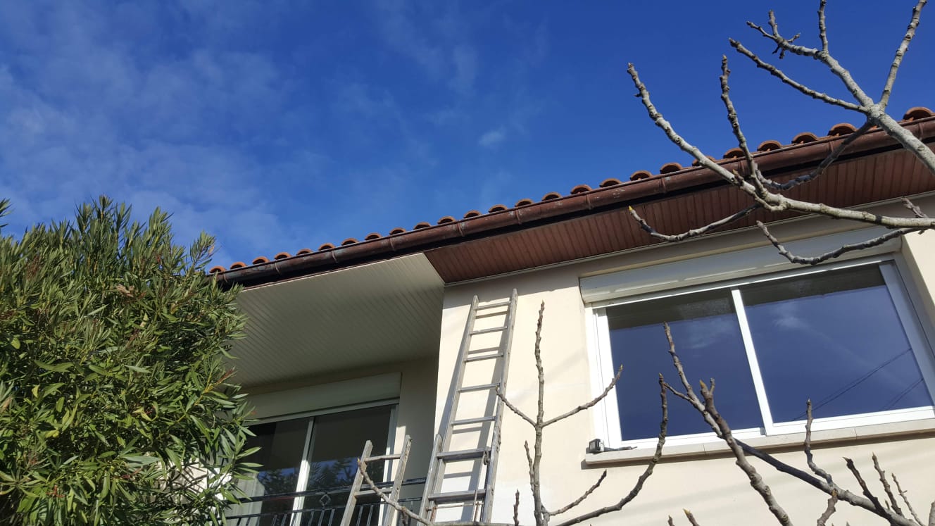 La pose des avants-toit en PVC est réalisée avec précision afin d'assurer un rendu propre et une parfaite adaptation à la toiture existante. Les éléments sont découpés et ajustés sur mesure pour garantir une finition homogène et durable.